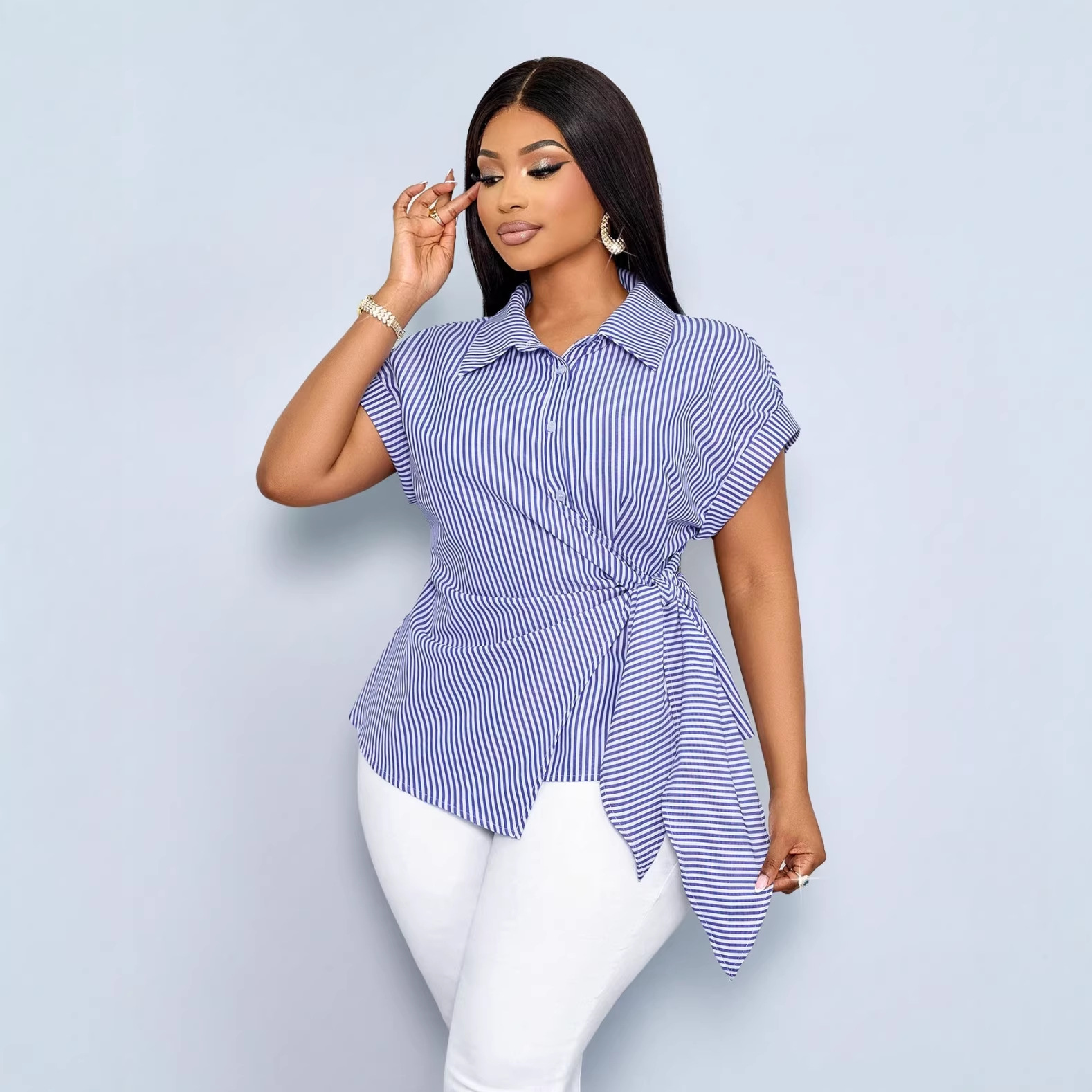 Elegant Stripe Short Sleeve