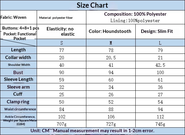 | Placket Type | Double Breasted |