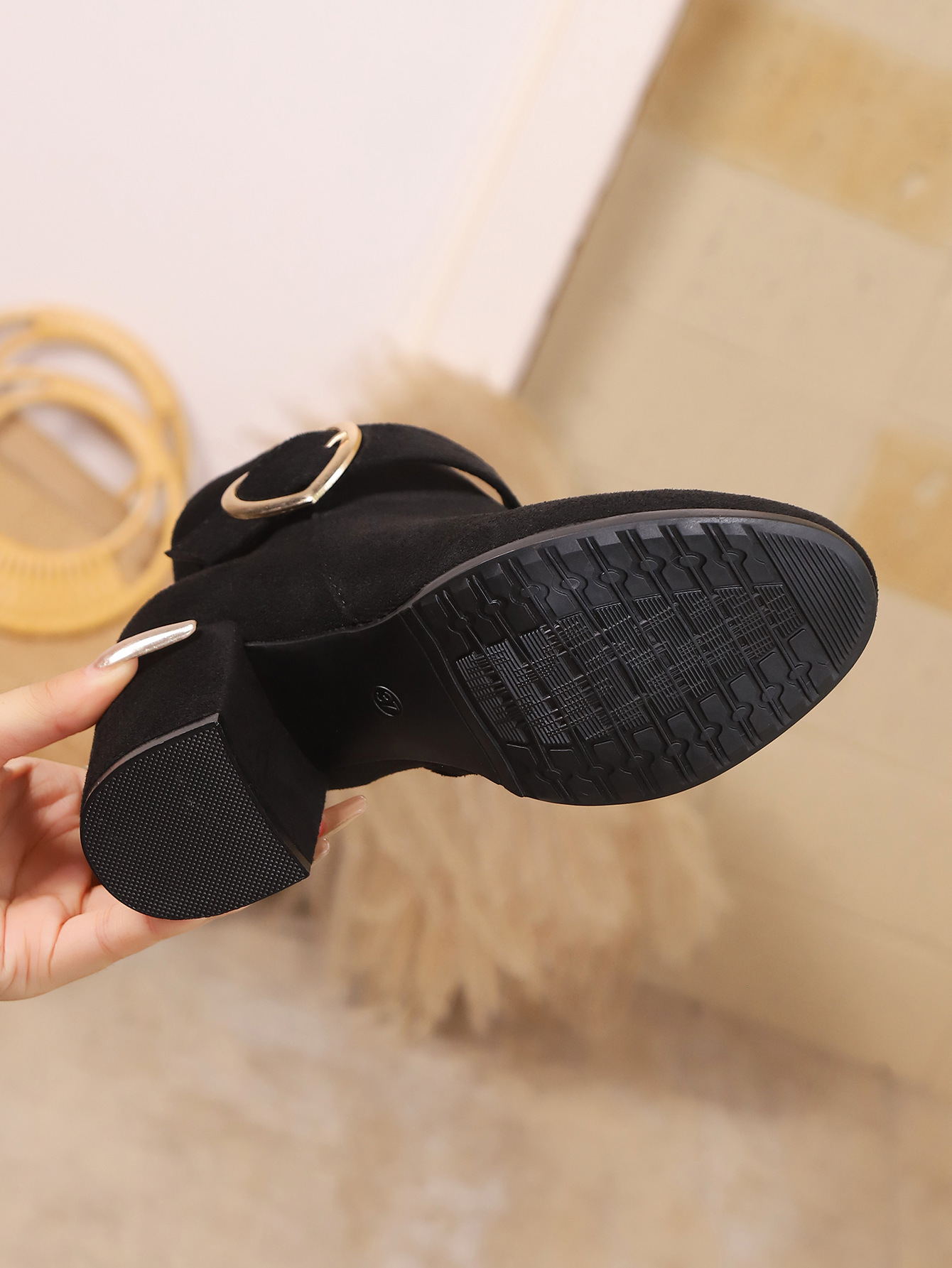 These stylish women’s ankle boots are designed to combine fashion, comfort, and everyday practicality for autumn and winter wear. Featuring a chic heart-shaped metal buckle detail, these boots add a sweet yet edgy accent to a classic solid-color design. The side zipper closure allows for easy on and off, making them perfect for daily use.