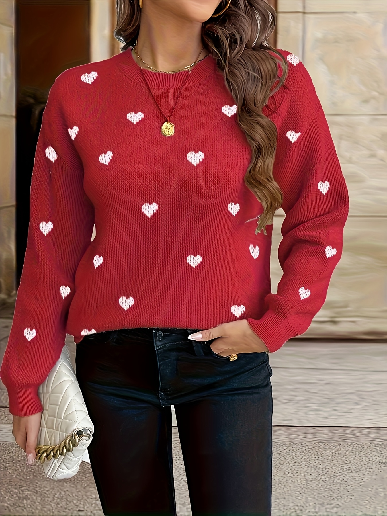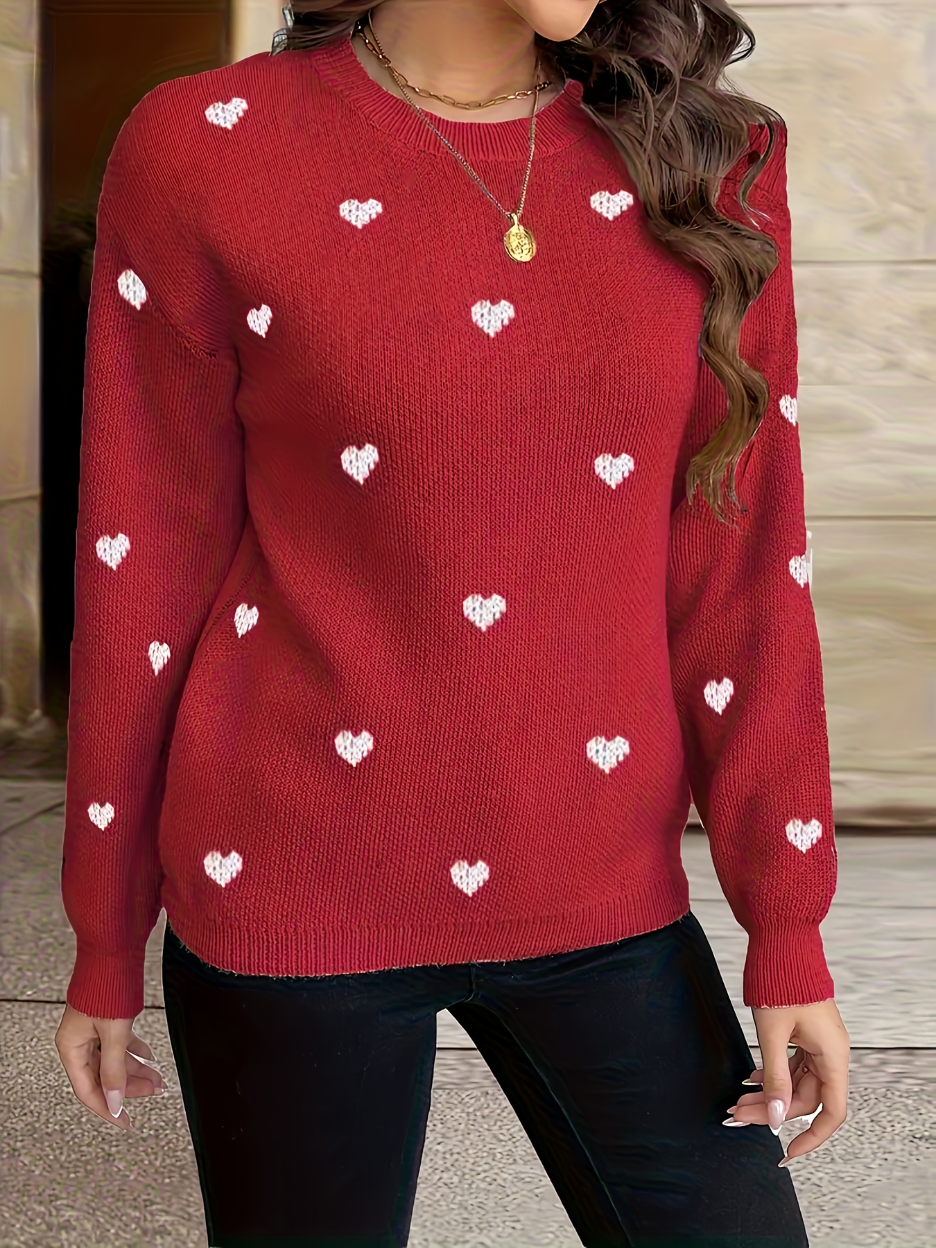 This heart-shaped high neck sweater is a cozy and stylish choice for autumn and winter daily wear. Crafted from soft knitted polyester fabric, it features a loose, relaxed fit that offers comfort without sacrificing style. The charming heart-shaped pattern adds a sweet and feminine touch, while the turtleneck design provides extra warmth during colder days. With long sleeves and a classic pullover style, this casual sweater is easy to pair with jeans, skirts, or leggings for a warm, effortless everyday look.