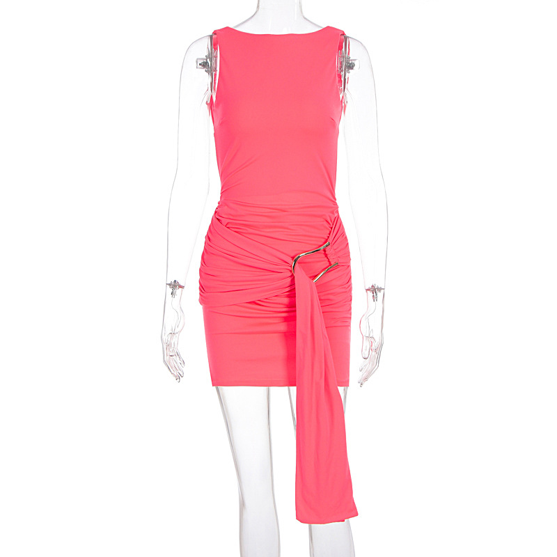 Size: S change S M L Color: Red change Step into elegance and allure with this sexy slim-fit backless dress, designed for women who want a sophisticated yet daring look. Crafted from a stretchy blend of spandex and polyester, this dress hugs the body for a flattering slim silhouette while offering comfort and flexibility. Its sleeveless design and above-knee length create a youthful and chic profile, while the backless cut with subtle metal decorations adds a glamorous, statement-making detail. Perfect for dates, formal events, or evening outings, the pure color design ensures versatility and timeless appeal. Lightweight and stylish, this dress is ideal for spring and summer occasions, combining business elegance with a sexy, fashion-forward twist. Pair it with heels or statement accessories to complete a striking outfit that’s sure to turn heads.