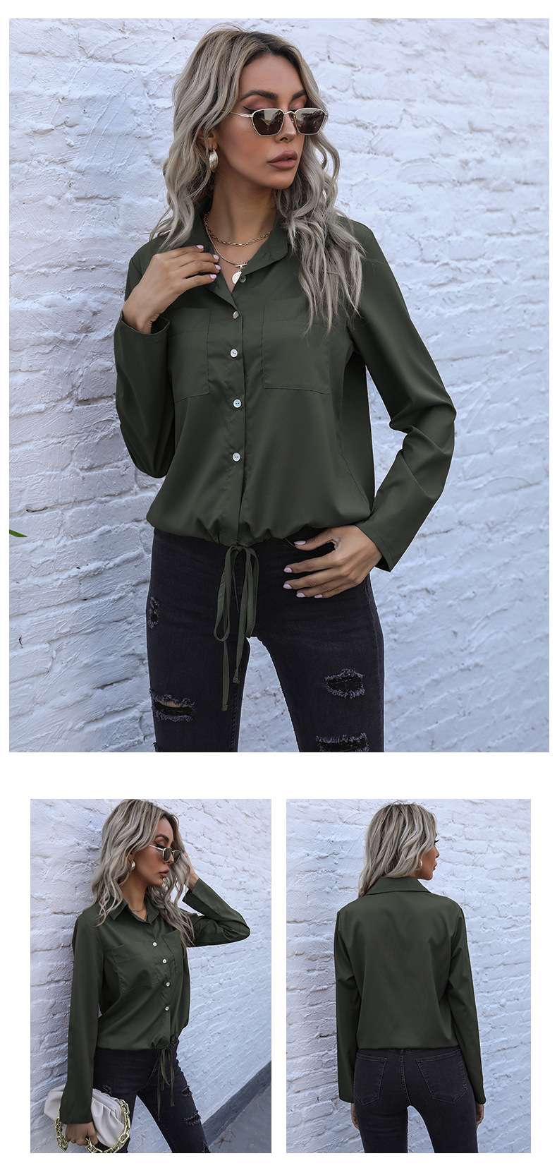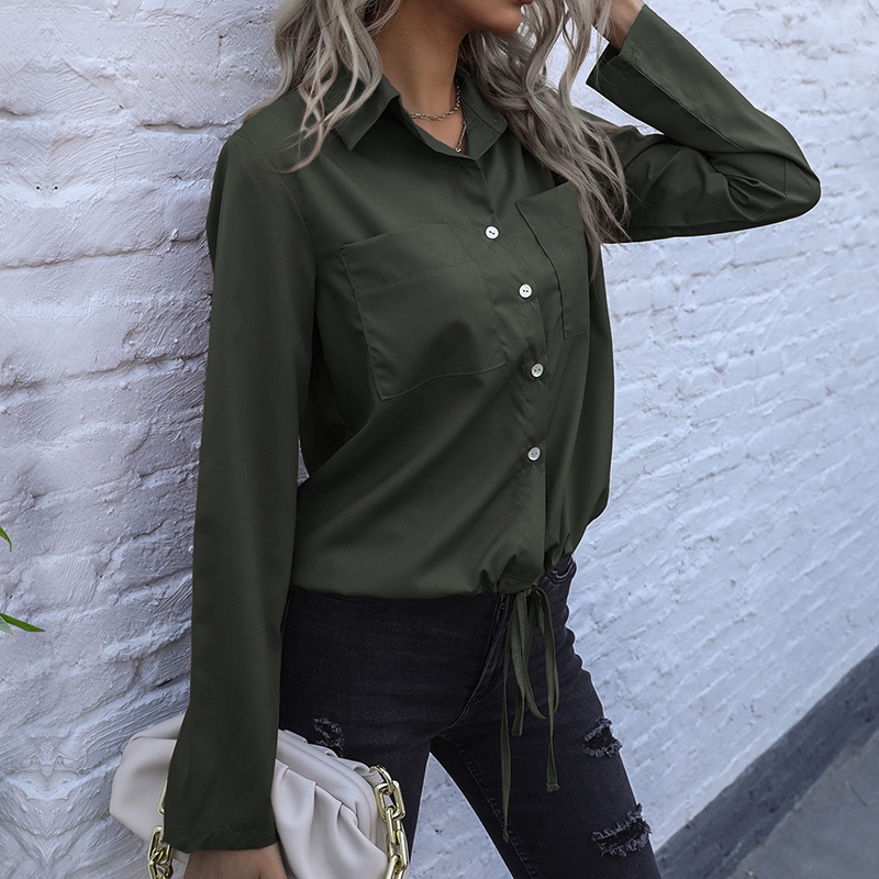 Long Sleeve Solid Color Cardigan Shirt Lace-up