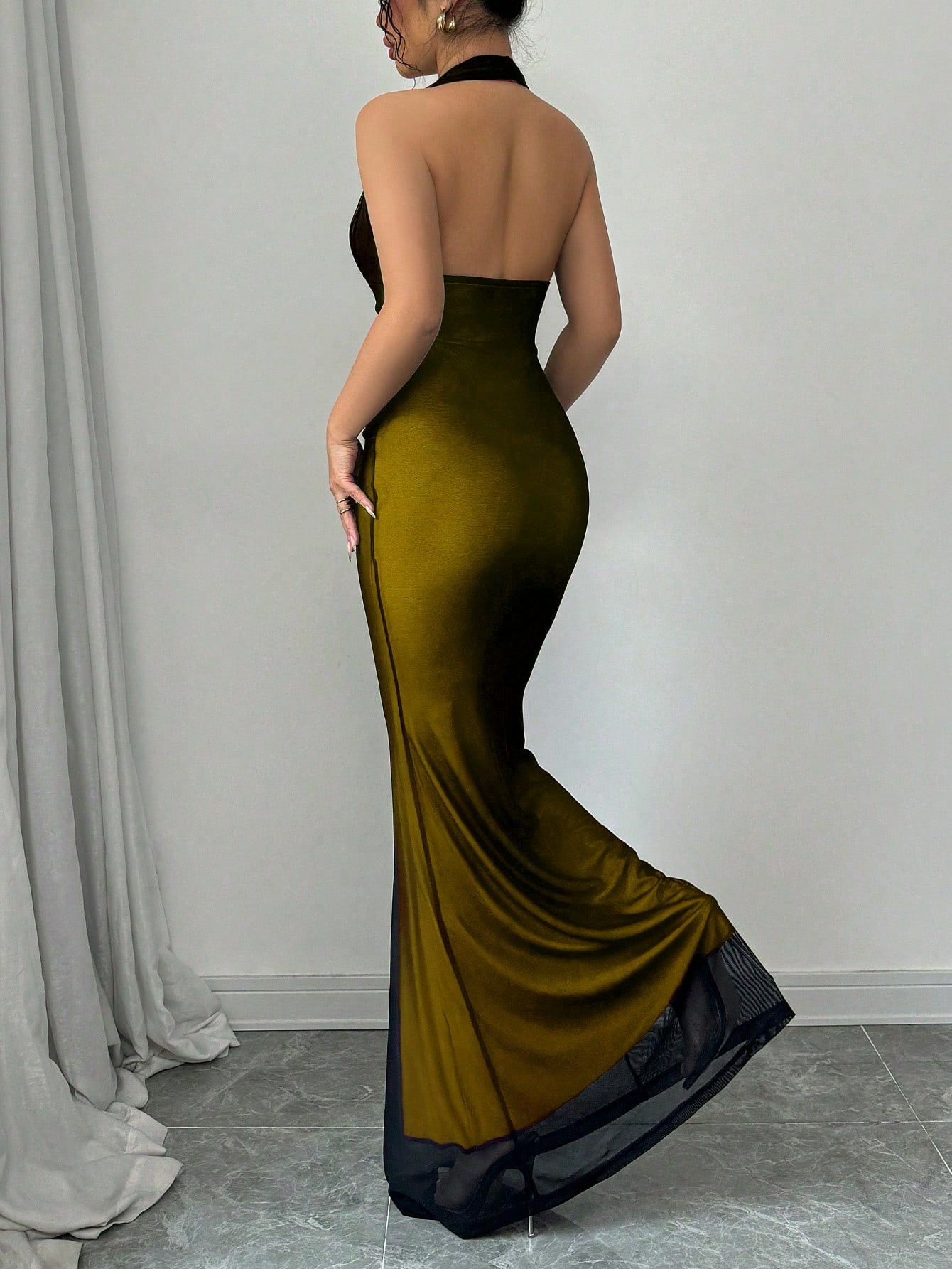 Embrace effortless summer glamour with this sexy sleeveless V-neck midi dress, designed to highlight feminine elegance with a bold, modern edge. Featuring a halter-style hanging neck and backless design, this dress creates a flattering silhouette while adding a touch of irresistible allure. The net gauze and lace fabric blend delivers a lightweight, breathable feel with subtle texture and stretch for comfortable wear.
