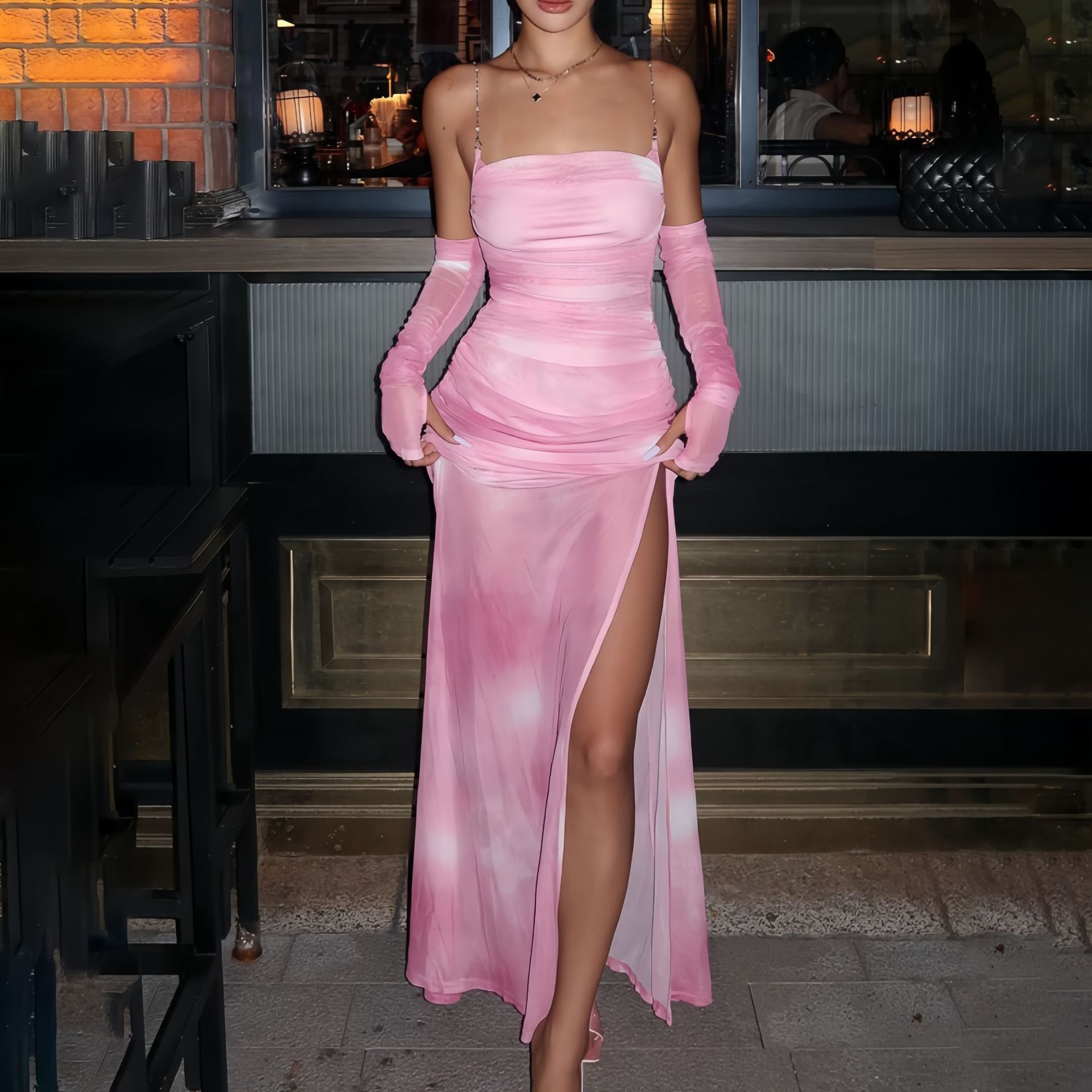 Size: S change S M L Color: Pink change Introducing the Autumn/Winter New Women’s Net Print Dress—an eye-catching, stylish piece designed for modern streetwear lovers. This dress combines a unique blend of comfort and bold fashion, featuring a printed pattern that adds depth and personality to your look. The sleeveless and backless design creates a striking silhouette, making it ideal for warm spring and summer days, while its long length gives it a sophisticated, streamlined appearance. Crafted with a blended fabric, the dress offers a soft, lightweight feel that hugs the body in a flattering skinny fit. The ankle-length, one-step dress structure enhances your natural curves, while the subtle split ensures ease of movement and adds a touch of sexiness. Its strap neckline and tank style make it perfect for layering or wearing on its own, depending on your preference. Suitable for street outings, casual hangouts, and even festive moments like Valentine’s Day, this maxi long dress is versatile and effortlessly stylish. Whether paired with heels, boots, or casual sneakers, it creates a fashionable and chic statement. With its raglan-style long sleeves (detachable/paired with inner layering depending on design interpretation), it adds an extra touch of style for year-round wear.