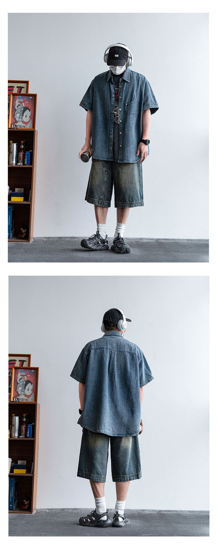 Size: S change S M L XL XXL 3XL Color: Blue change The Casava Retro Design Straight Leg Men's Shorts offer a classic American-style look with a washed denim finish. Designed for summer comfort, they feature a regular fit, micro-elastic fabric, and a wide straight-leg cut—perfect for casual, everyday wear.