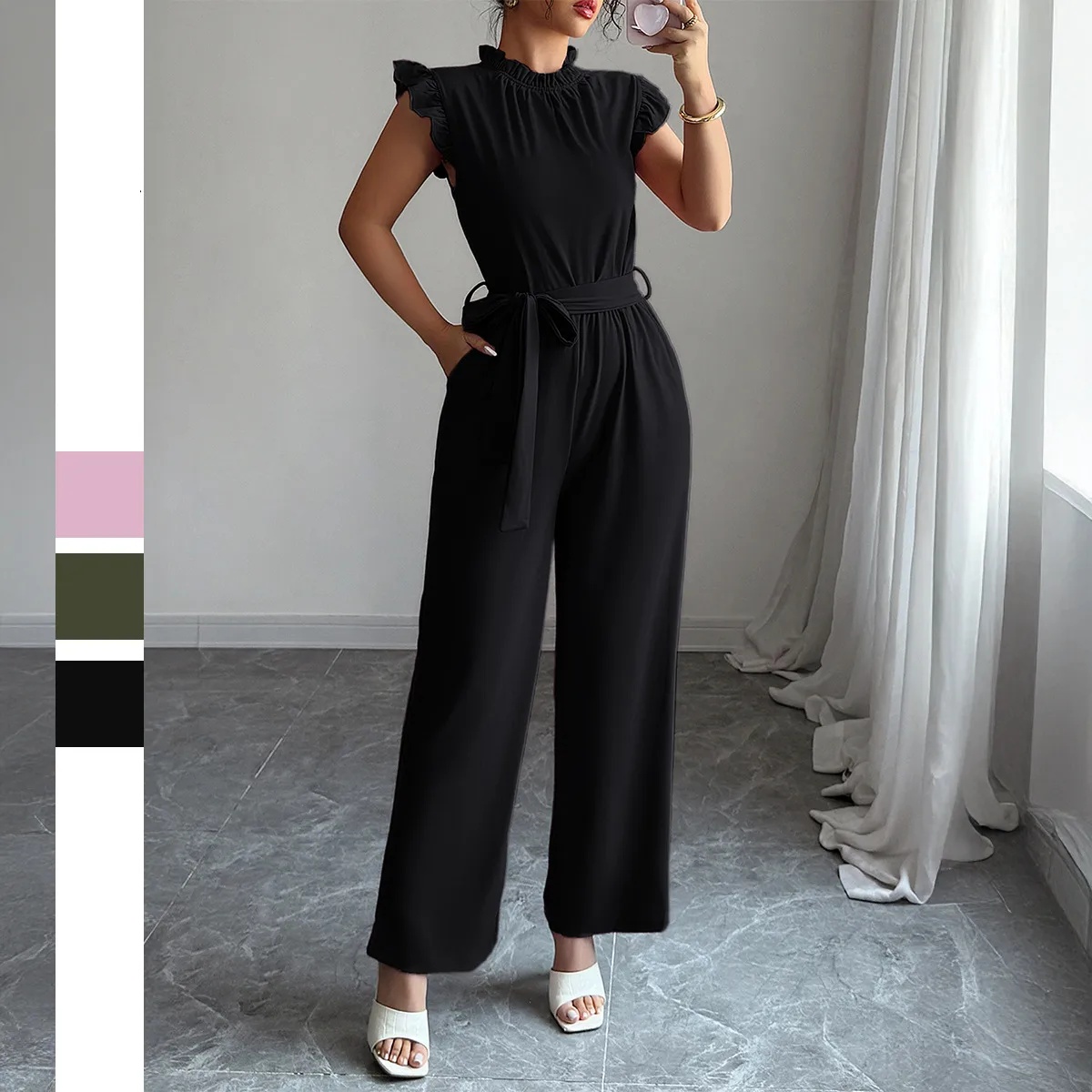 The Casava Women’s Casual Solid Color Jumpsuit features a slim-fitting silhouette with a belted high waist that enhances shape and style. Made from a comfortable spandex–polyester blend with micro-elasticity, this short-sleeve jumpsuit is perfect for everyday summer wear, offering a clean, versatile look suitable for casual outings.