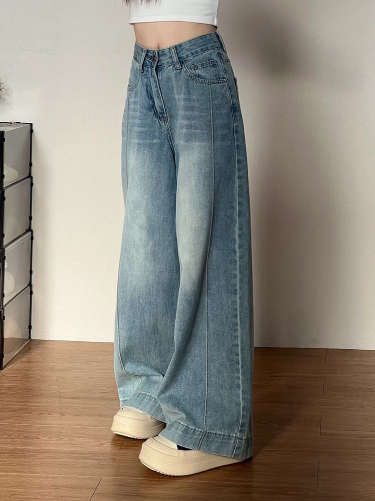 Size: XS change XS S M L XL Color: Blue change The Casava Tube Pants offer a relaxed, flattering silhouette inspired by retro and Japanese leisure aesthetics. Designed with a high-rise waist and wide straight leg, these denim trousers create a sleek drape that suits both casual outings and everyday wear. The patchwork detail and smooth non-ironing finish give them a unique character, while the cotton-rich fabric ensures comfort and durability.