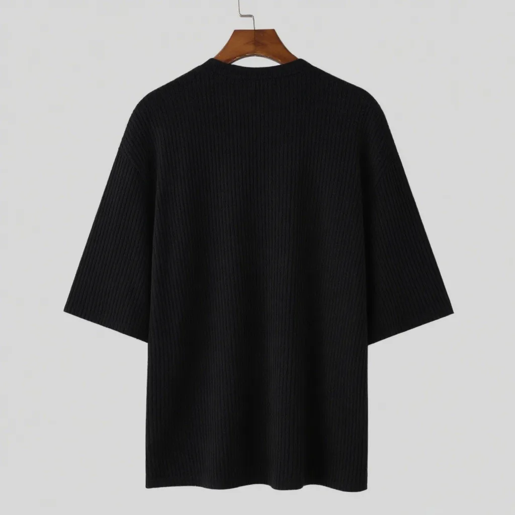 The Casava Casual V-Neck Knitted T-Shirt is a lightweight and relaxed summer essential for men. Designed with a loose fit, mid sleeves, and a soft rib-knit polyester fabric, it offers breathable comfort for everyday wear. Its clean solid-color design and collarless V-neckline create a simple yet stylish casual look.