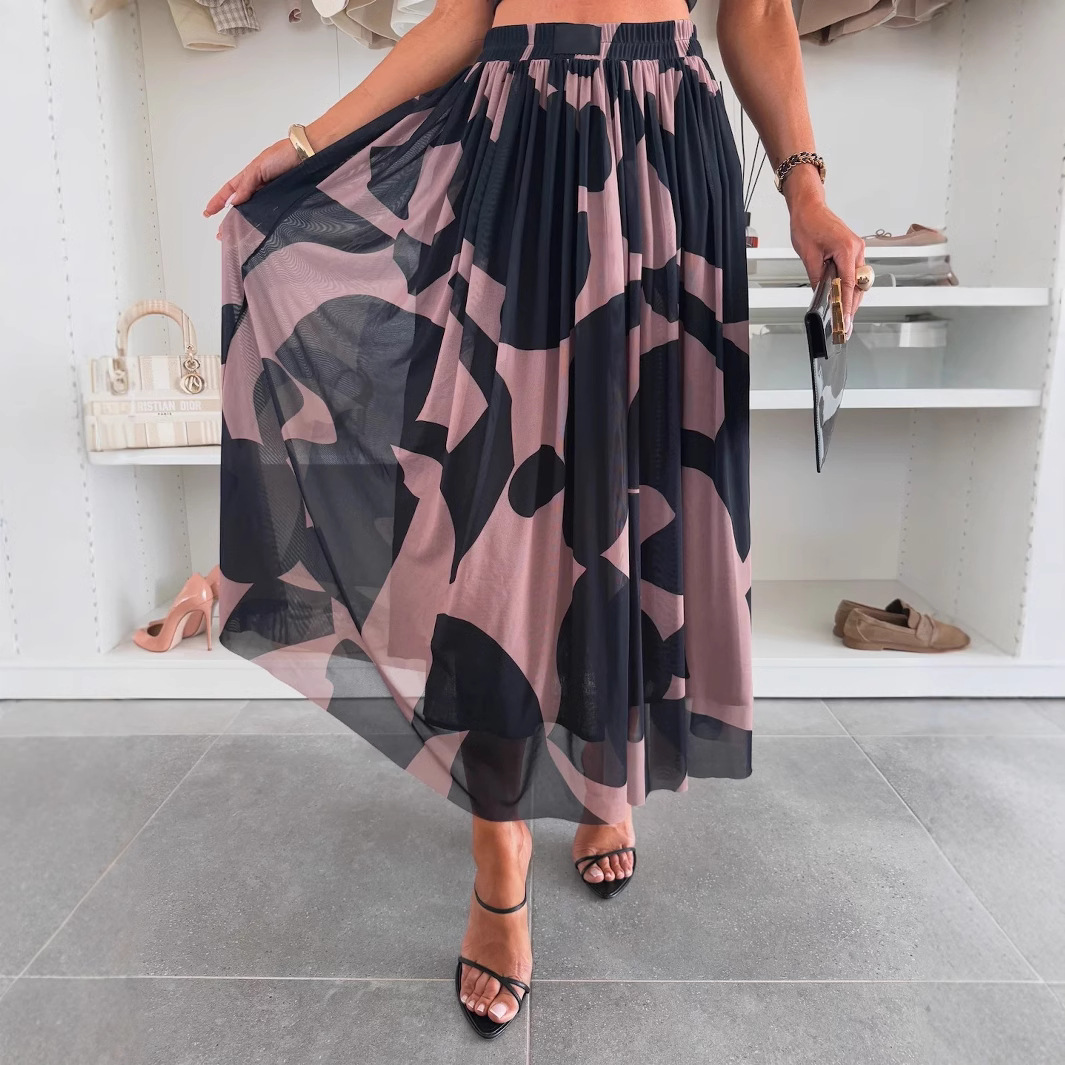 Channel effortless elegance with this Bohemian Printed Maxi Skirt. Featuring a vibrant color block print and a comfortable elastic high waist, this flowing flare skirt blends casual comfort with chic vacation style. Perfect for summer getaways or relaxed daily wear.