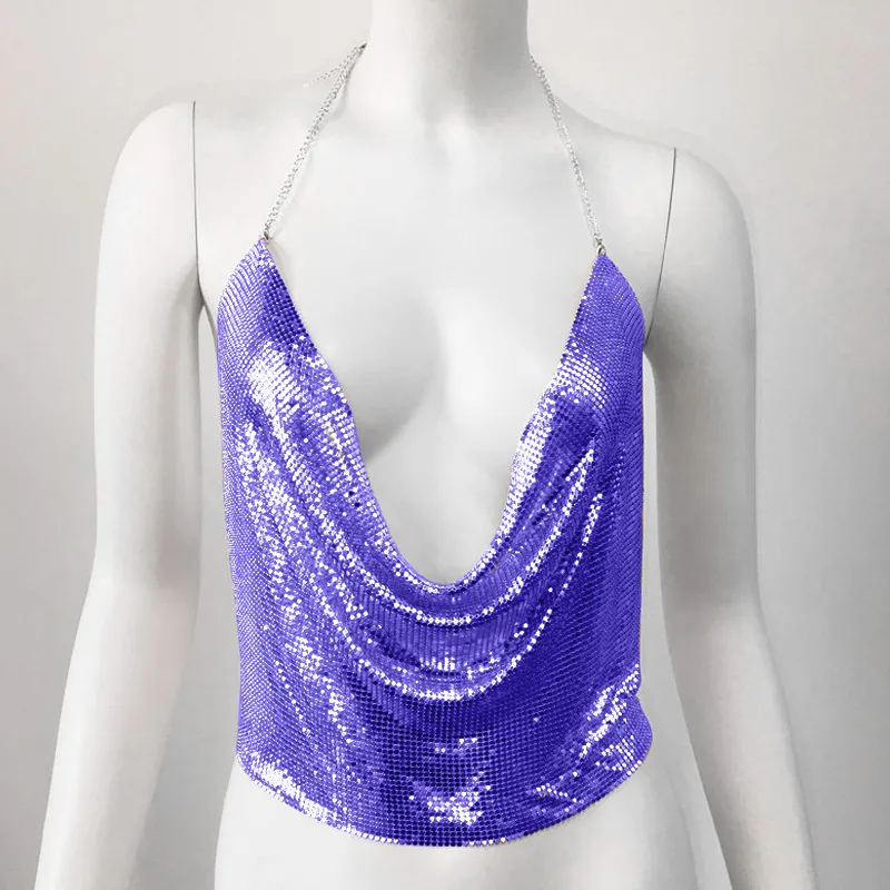 A shimmering women’s sequin tank top perfect for vacations, parties, or streetwear looks. Featuring a halter neckline, loose fit, and metallic fabric, this sexy and stylish top brings effortless glamour to summer outfits.