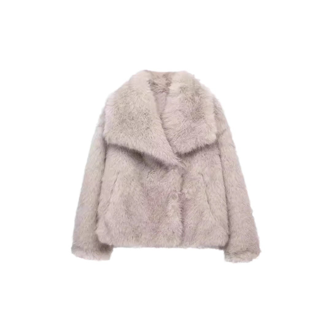 Stay warm and stylish with this women’s streetwear faux fur coat, featuring a soft imitation fur fabric and relaxed loose fit. Designed with a turndown collar and long sleeves, this cozy solid color coat is perfect for casual and daily wear during autumn and winter.