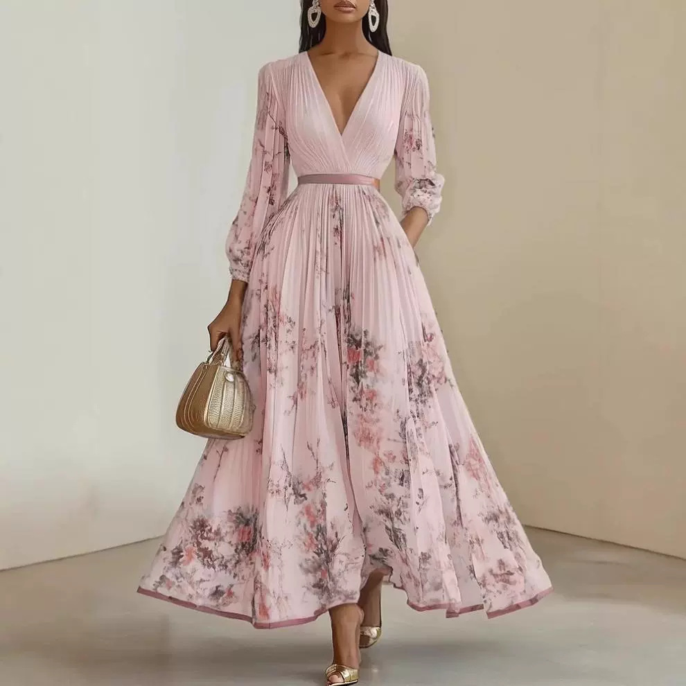 The Casava Digital Print Pleated Dress is an elegant, beautifully designed women's dress featuring a vibrant plant-floral digital print. With its flattering V-neckline, long sleeves, and flowing A-line pleated skirt, this dress blends sophistication with comfort. Crafted from soft polyester and detailed with a secure zipper, it’s perfect for formal events, casual outings, or stylish everyday wear.