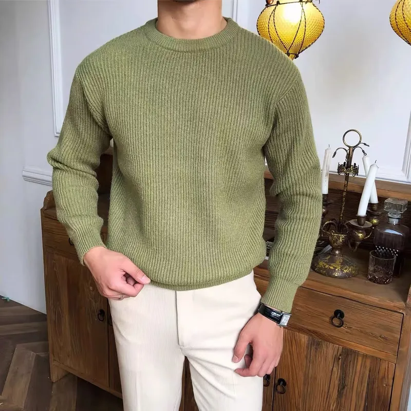 The Casava Casual Knitted Sweater is a men’s autumn pullover featuring a round neck and long sleeves. Made from printed polyester, it offers a loose, thickened fit for trendy, casual wear.