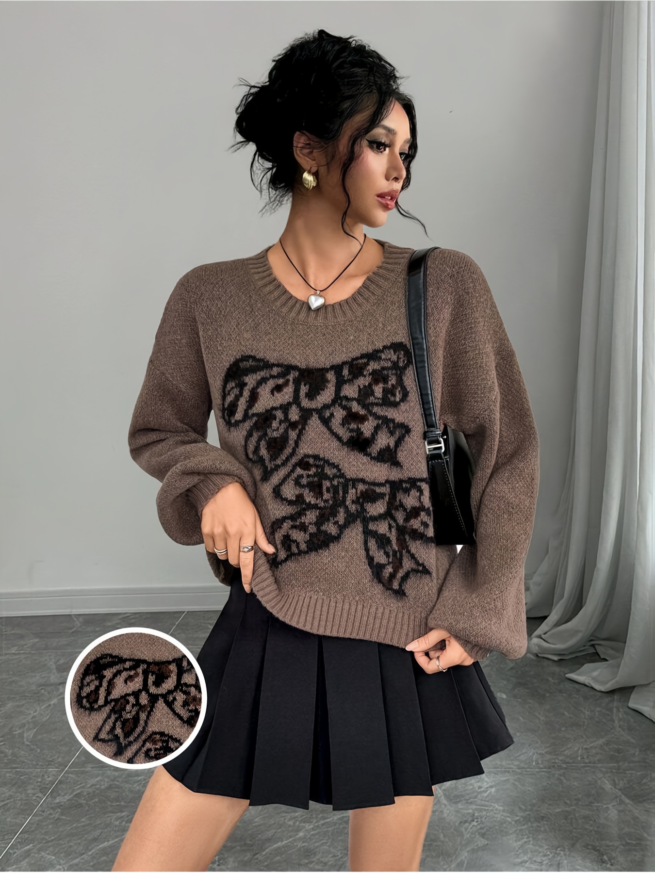Size: S change S M L XL XXL Color: Coffee change The Casava Wild Grace Leopard Knit Sweater blends cozy warmth with bold style. Designed with a loose fit, drop shoulders, and a soft turtleneck, this knitted pullover is perfect for winter days when you want comfort without sacrificing fashion. The leopard print adds a confident, modern touch ideal for daily wear.