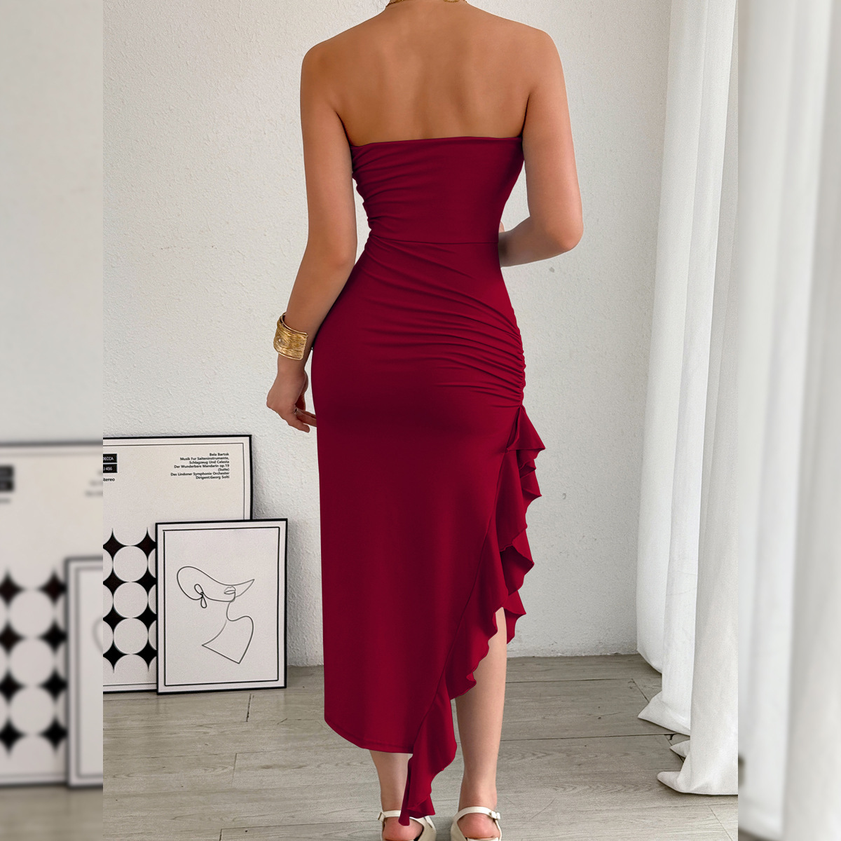 The Casava Bodycon Split Hem Dress is designed to highlight confidence and curves with a sleek, sexy silhouette. Featuring a strapless wrap-chest design and a daring thigh-split hem, this slim-fit sheath dress comes in a clean solid white finish. Made from a stretchy spandex–polyester blend, it’s perfect for autumn and winter nights, whether you’re heading to a nightclub, a romantic date, or festive occasions like Christmas and Valentine’s Day.
