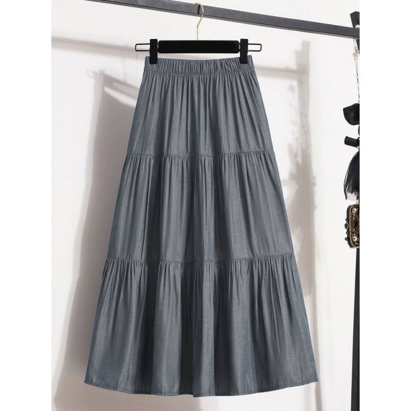 Elevate your everyday look with this Fashion Tide High Waist Pleated Denim Skirt. Designed in a flattering A-line silhouette, it offers a loose yet slimming fit perfect for a chic commuter or casual outing. Crafted from durable polyester and spandex for structured comfort and style.