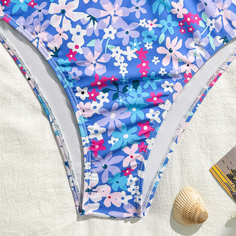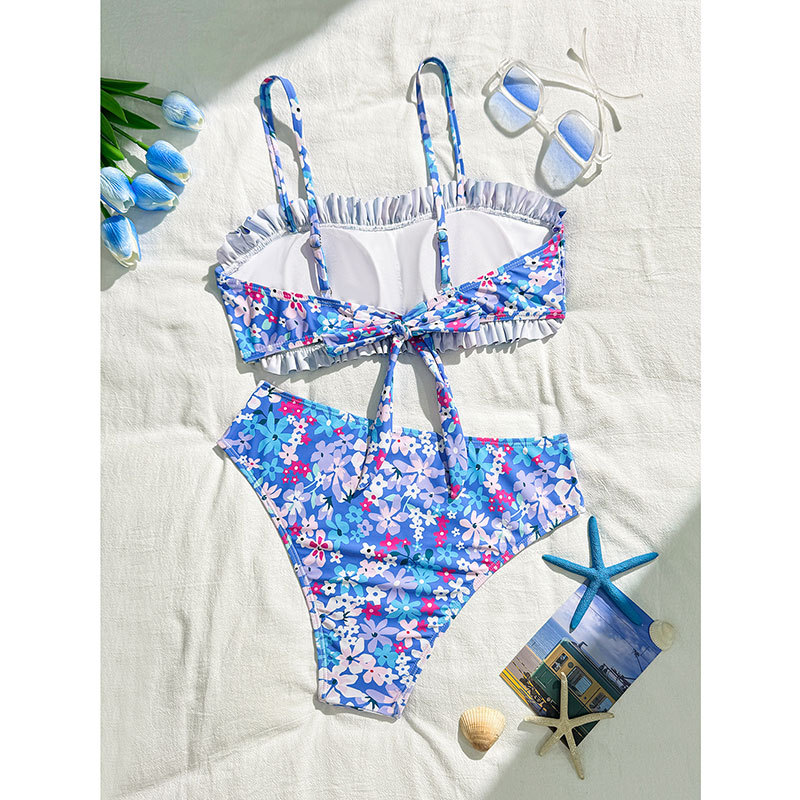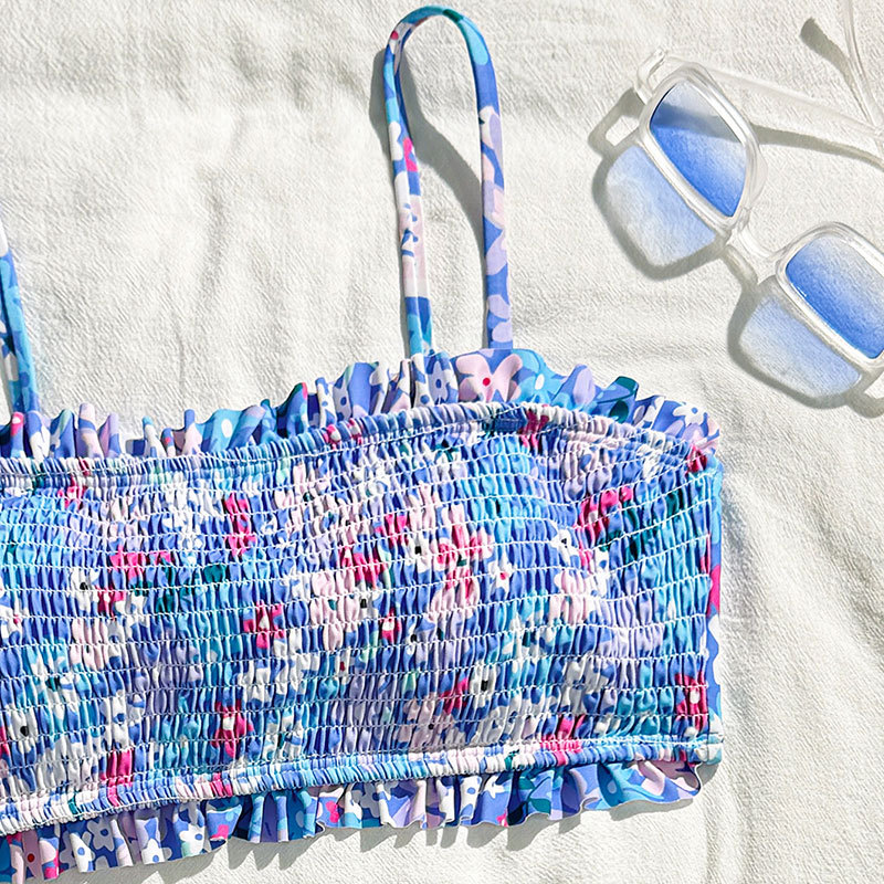 Size: S change S M L Color: Light Purple change Fresh, playful, and made for sunny escapes, the Casava Bloom Lace-Up Bikini Top features a ditsy floral print with delicate lettuce trim for a feminine finish. Designed with adjustable straps and a backless lace-up detail, this bandeau-style top offers a flattering, secure fit perfect for poolside lounging and vacation swims. Lightweight and comfortable, it’s an effortless choice for spring and summer beach days.