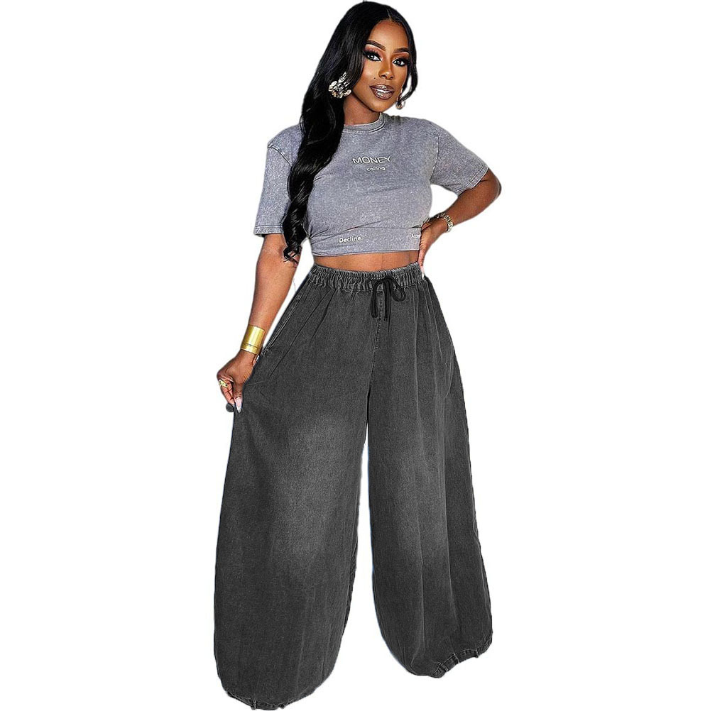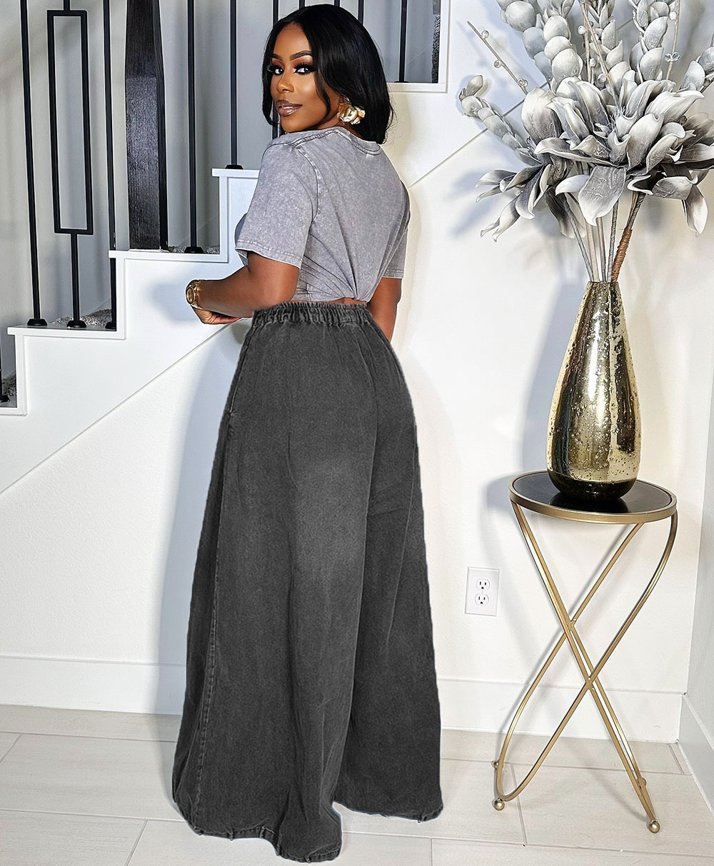The Casava Loose Wide Leg Denim Jean blends street-style energy with relaxed comfort. Designed with an elastic waist and roomy silhouette, these jeans feature ruched detailing and leg drawstrings for a modern European-edge look. Crafted from a durable polyester–denim cotton blend, they offer full-length coverage and an effortlessly loose fit that suits every season and daily wear.