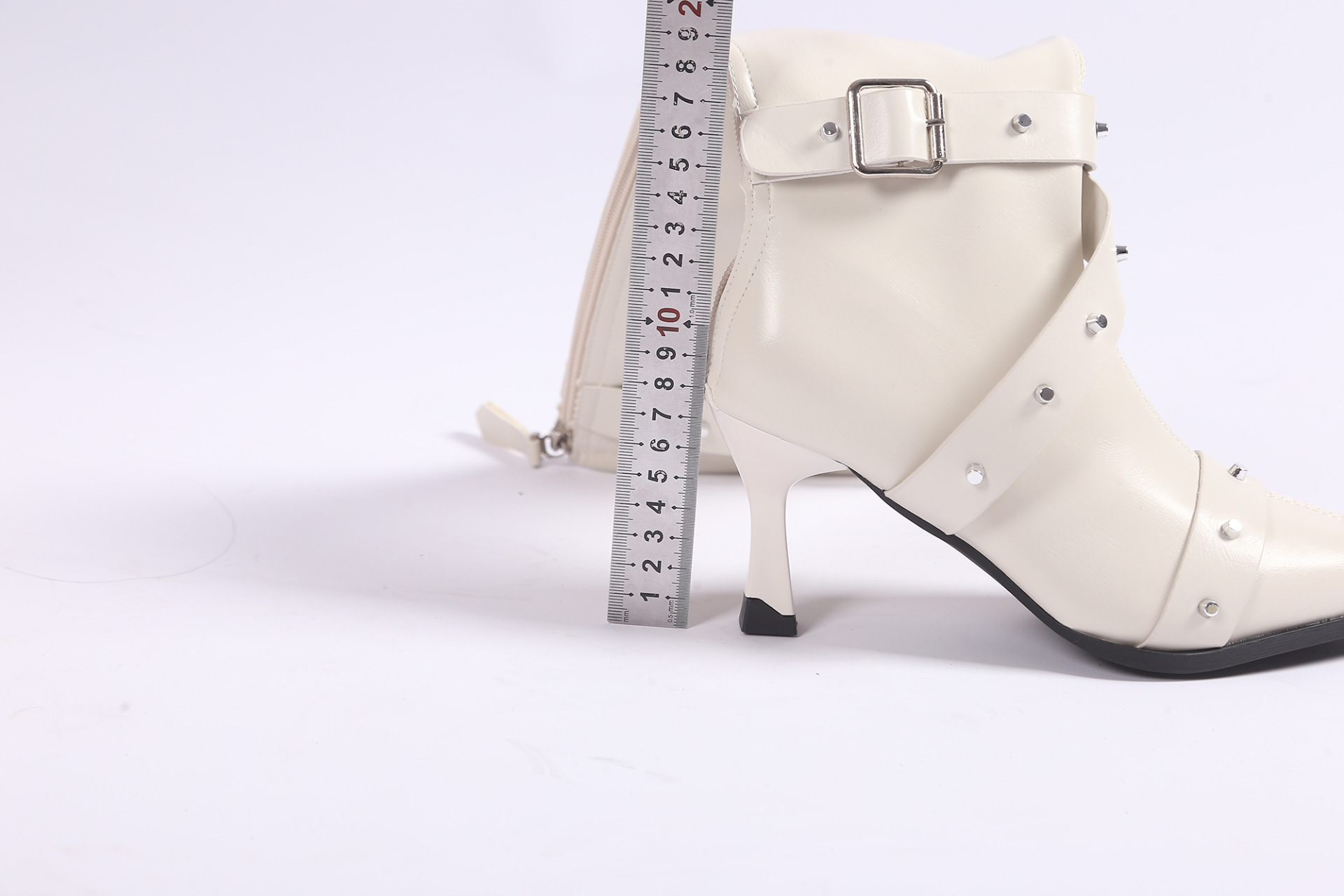 The Casava LuxeStride High-Calf Fashion Boots are designed to elevate any outfit with elegance and edge. Featuring a pointed toe, stiletto high heel, and high-tube silhouette, these boots are accentuated with stylish belt buckle and rivet details. Crafted from durable PU leather with PU leather and cloth lining, cushioned insole, and a rubber outsole, they combine comfort with a slimming, heightening effect, perfect for autumn, winter, and spring wear.