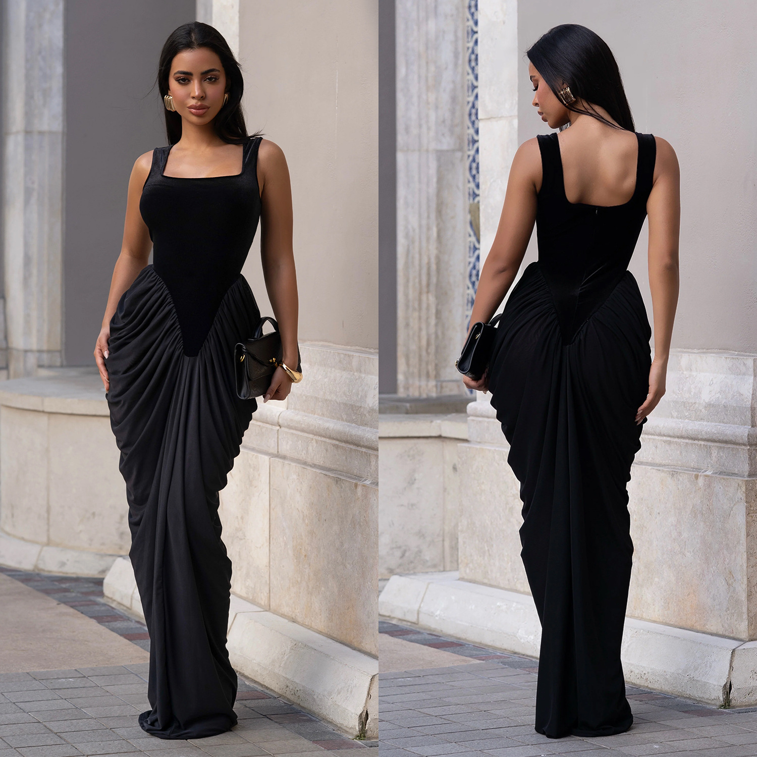 The Casava Velvet Backless Maxi Dress embodies refined European elegance with a sleek business-ready silhouette. Designed with a flattering U-neckline, sleeveless cut, and subtle wrap detailing, this slim-fit bodycon dress features a luxurious velvet fabric and an ankle-length finish. Perfect for office, business occasions, and formal events across all seasons, it delivers confidence, sophistication, and timeless style in one effortless piece.