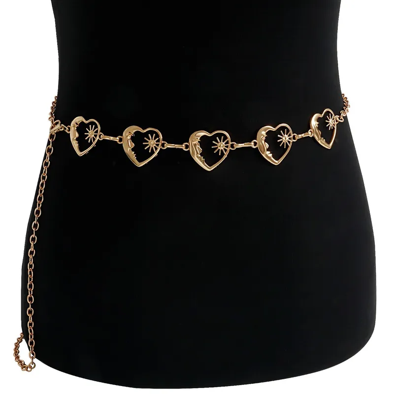 A stylish women’s waist chain featuring a chic moon pattern with a shiny plated metal finish. Perfect for street fashion or casual outings, this fashionable accessory adds a modern celestial touch to your outfit.