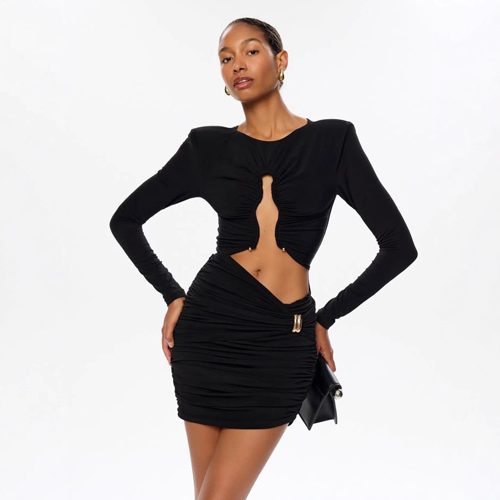 Bold, sleek, and irresistibly elegant, the Casava Midnight Allure Bodycon Dress is designed to make a statement at any evening event. Crafted with a flattering slim-fit silhouette, this above-knee sheath dress features subtle hollow-out detailing that adds a touch of sensual sophistication. The long sleeves and stretch-blend fabric ensure comfort and confidence, making it perfect for autumn and winter banquets, parties, and night outings.