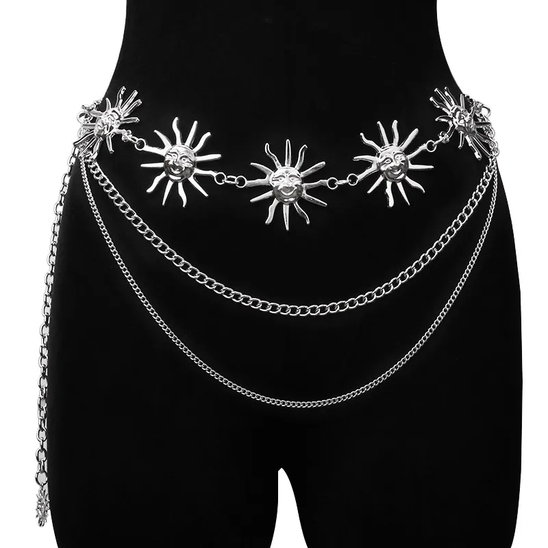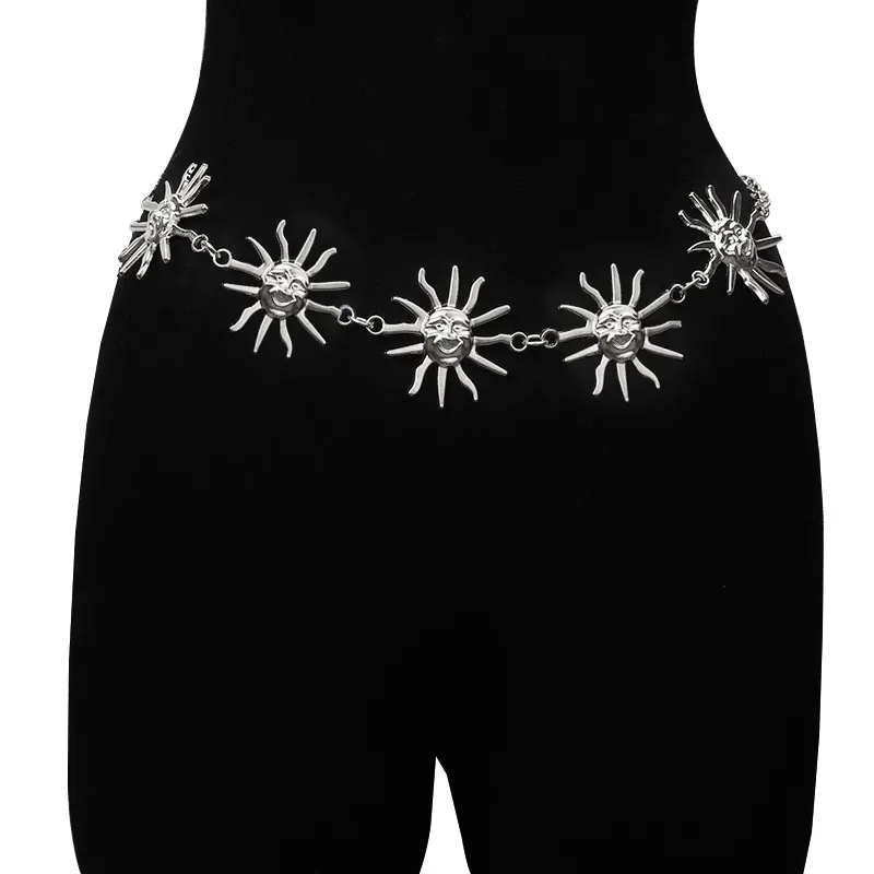 The Casava Sun Alloy Waist Chain features a stunning retro sun design that radiates elegance and charm. Crafted from durable alloy, this INS-style waist chain adds a trendy touch to your daily outfits, making it a perfect statement accessory for casual wear.