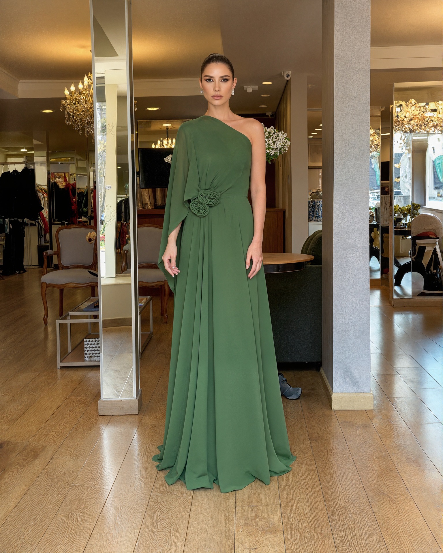 The Casava Off-Shoulder Chiffon Gown exudes effortless elegance for any season. Designed with a loose, flowing silhouette, wide hemline, and sleeveless off-shoulder style, this floor-length gown features delicate floral craft details and a soft chiffon-polyester blend. Perfect for office, business events, parties, or festive occasions like Valentine’s Day and New Year, it combines comfort with sophisticated charm.