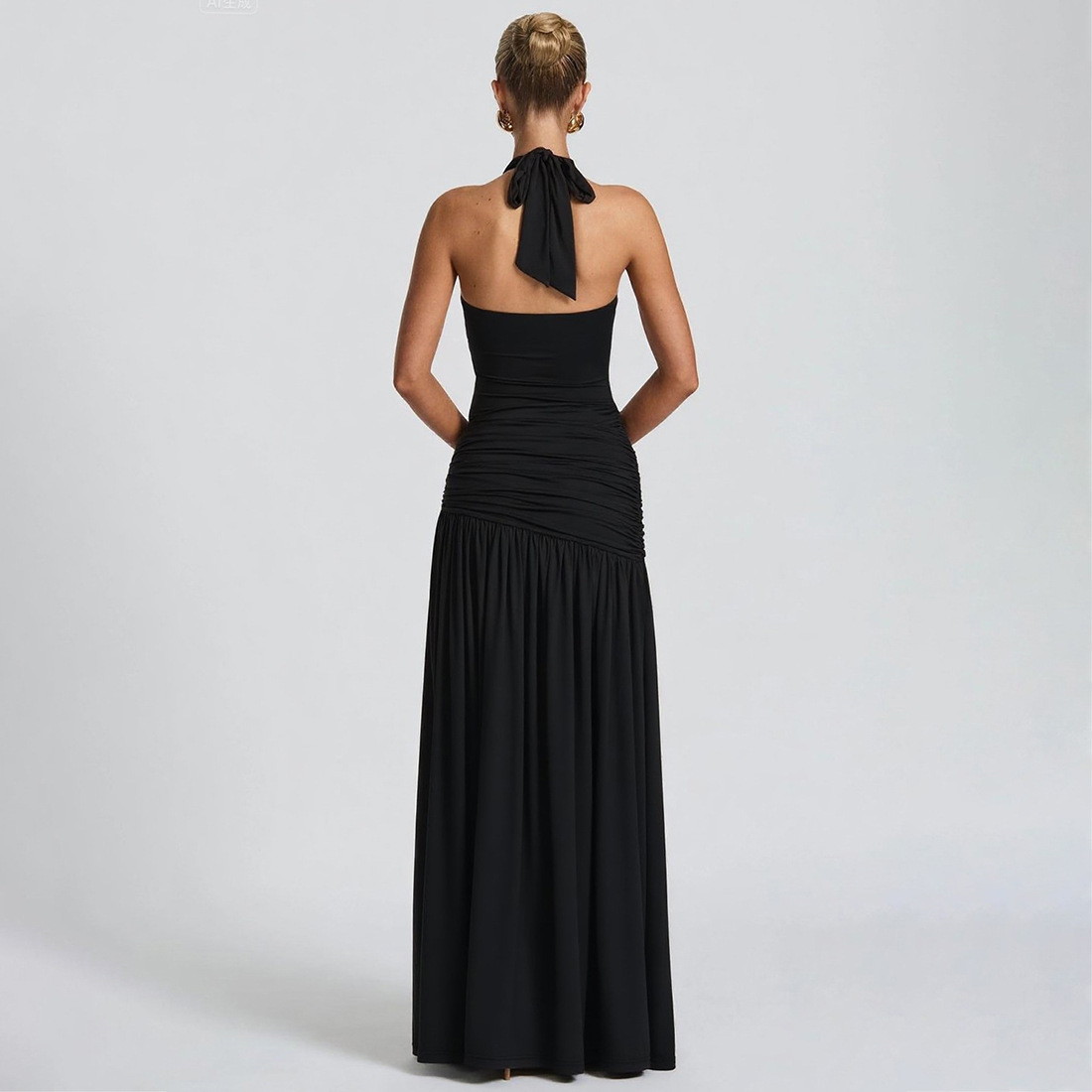 The Casava Hem Split Long Dress is a sexy and elegant summer gown featuring a strapless folded design and a dramatic hem split for a bold, feminine silhouette. Designed with a halter neckline, mid-waist fit, and a backless style, this slim-fit A-line maxi dress offers effortless sophistication for evening events, parties, and special occasions.